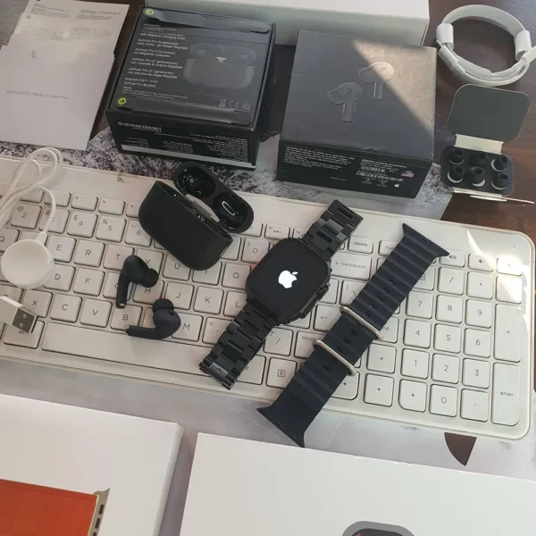 Exclusive combo featuring the sleek Apple Watch Ultra and AirPods Pro 2 in all-black design.